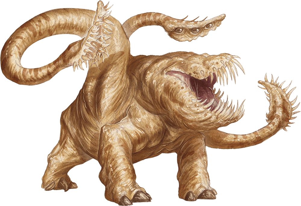 Let’s say you’re the Dungeon Master (DM) for a party of five players who all have level-3 characters. According to the math, a “hard” combat encounter for that group would involve a single monster with a CR of 5. For the sake of this example, let’s make a monster inspired by the Demon Slayer anime’s Hand Demon, a durable humanoid enemy that can quickly grow extra limbs to use as both weapons and shields. To pick a monster to use as the base, we’d look at a list of D&D monsters with a CR of 5 and think about which of them might fit a Hand Demon. There are several good contenders, but let’s go with the Otyugh: a large creature with many powerful tentacles that could be reskinned as the extra arms or legs of the Hand Demon.